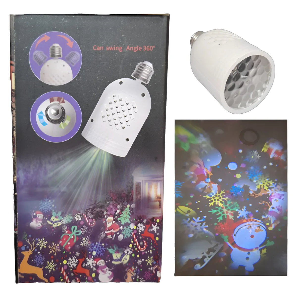 Con un solo bombillo, podrás proyectar luces que llenarán tu hogar de espíritu navideño. Su diseño eficiente en energía asegura que puedas disfrutar de largas noches iluminadas sin preocuparte por el consumo eléctrico. Ideal para reuniones familiares, fiestas o simplemente para embellecer tu hogar durante la temporada.
