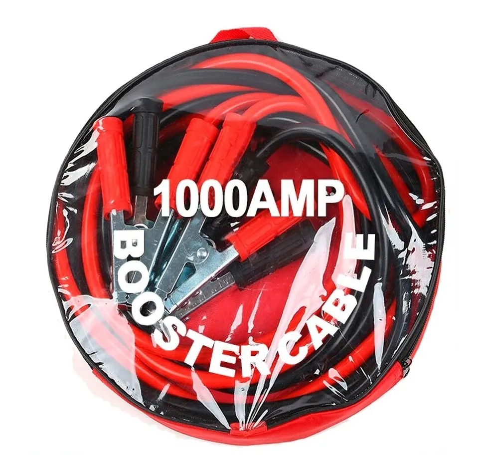 Cables De Inicio Batería Vehículos Booster 1000 Amp Son 1000 AMP se adapta a la parte superior y las baterías poste lateral de ingeniería para climas fríos y calientes permanece flexible a -67 grados Fahrenheit adecuados para poner en marcha todo tipo de vehículos. Poseen una cubierta de caucho resistente y libre de enredos 2,22 metros de longitud de cable y 2,52 metros de punta a punta. Aislamiento de PVC de resistencia al calor, aceite y ácido flexible incluso a bajas temperaturas Ideal para aplicaciones de 6V, 12V y 24V Apto para todos los motores de gasolina y diesel pinzas en cobre aisladas en pvc. Cable negro y rojo. Forro o estuche para guardarlo