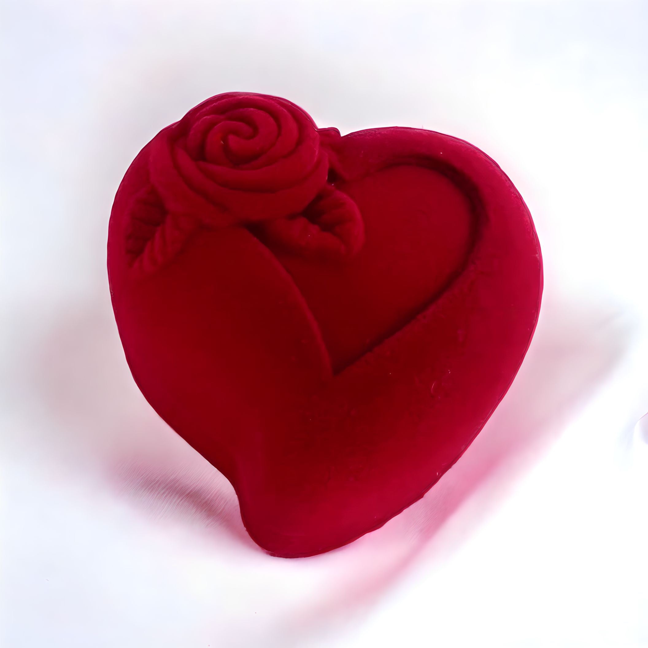 Caja de Regalo en forma de CORAZON con una rosa en la parte superior. Mecanismo de cierre tipo cofre, perfecto para bisuteria y joyeria.