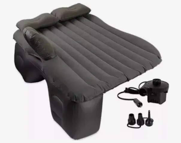 📏 Dimensiones: 138 x 72 x 55 cm 💪 Material: PVC de alta calidad 🌫️ Color: Gris plateado ⚖️ Capacidad: Hasta 150 kg (¡2 adultos!) 🔌 Bomba eléctrica + 2 almohadas incluidas 🚙 Compatible con sedanes, SUV y mini vans 🎒 Fácil de guardar y transportar