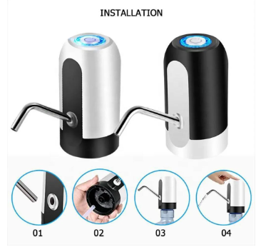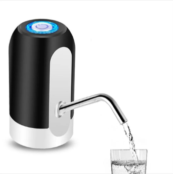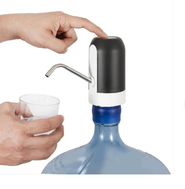 Dispensador automático de agua eléctrico y recargable, diseñado para adaptarse a botellones o bidones de agua de diferentes capacidades. Funciona como una minibomba portátil que succiona el agua del contenedor y la dispensa con solo presionar un botón.
