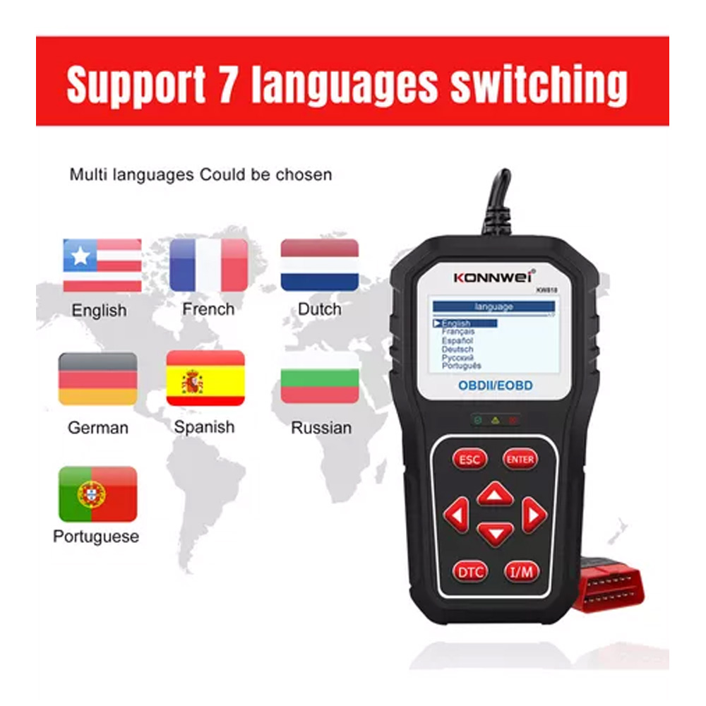 Con una pantalla LCD de alta definición y una interfaz intuitiva, el KW818 no solo detecta códigos de error del motor, sino que también proporciona información vital en tiempo real, como el flujo de datos PCM, lecturas de sensores, pruebas de emisiones y mucho más. Gracias a su diseño ergonómico y su compatibilidad multilingüe, su manejo es sencillo para usuarios de todos los niveles.