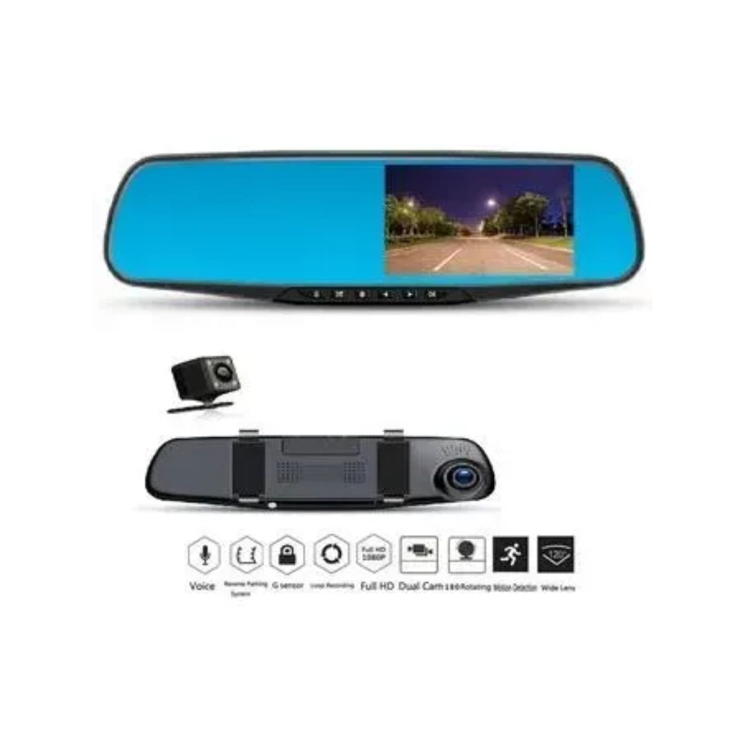 ✅ Resolución Full HD 1080p. ✅ Cámara frontal + cámara trasera con visión nocturna. ✅ Grabación cíclica y detección de movimiento. ✅ Pantalla LCD de 4.3” integrada en el espejo. ✅ Gran ángulo de visión de 170°. ✅ Micrófono incorporado y grabación de audio. ✅ Función G-Sensor: bloquea automáticamente videos en caso de impacto. ✅ Soporte para tarjeta MicroSD hasta 32 GB (no incluida). ✅ Fácil instalación sobre el espejo original del vehículo. ✅ Alimentación mediante encendedor de 12V.