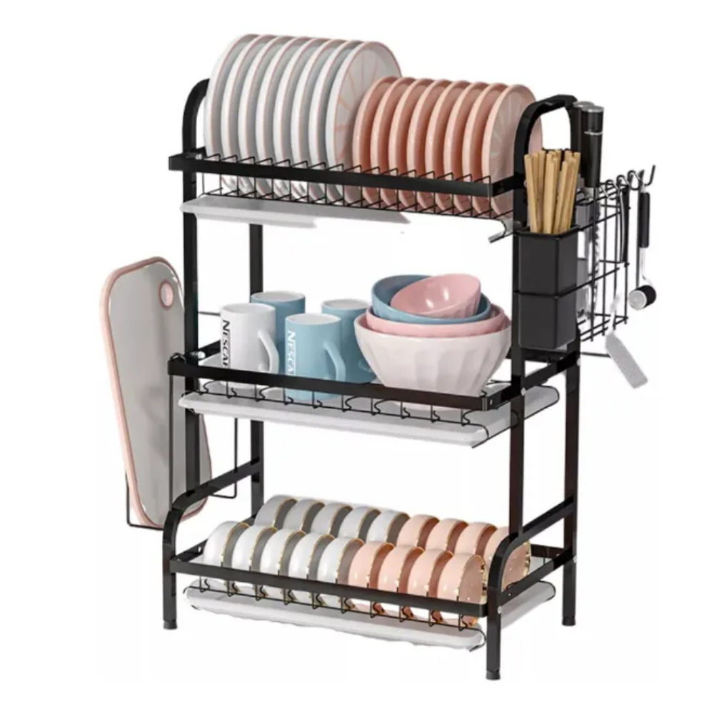 El Escurridor de Platos para Cocina es una solución práctica y funcional para mantener el orden y la limpieza en tu espacio de lavado. Su diseño vertical de 3 niveles permite optimizar el espacio sobre la encimera, facilitando el secado organizado de platos, vasos, cubiertos y utensilios de cocina.