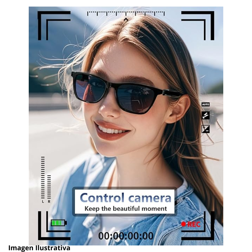 En una patilla se observa simbolo discreto junto zona ampliada, indicando presencia sistema interno controlable. La estructura rígida ofrece soporte estable durante el uso cotidiano, permitiendo combinación funcionalidad tecnología junto al uso diario exterior recreativo.