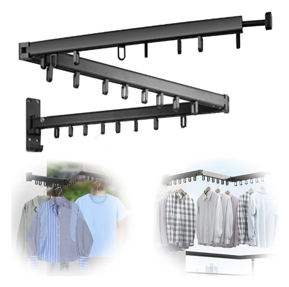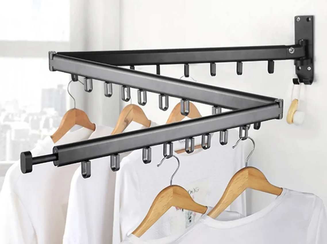 🔺 Diseño de 3 brazos abatibles 👕 Mayor capacidad para colgar ropa 🔄 Plegable y ajustable 🧱 Instalación fija en pared 💪 Estructura resistente en metal 📏 Ahorra espacio en el closet 🏠 Ideal para habitaciones, lavaderos y closets ✨ Diseño moderno y minimalista