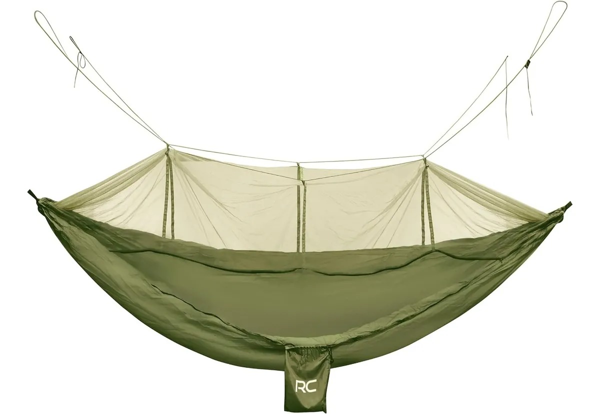 Esta hamaca con toldillo y mosquitero es ideal para quienes disfrutan del contacto directo con la naturaleza, ofreciendo una solución compacta y práctica para dormir cómodamente y sin preocupaciones de insectos durante tus aventuras de camping y viaje.