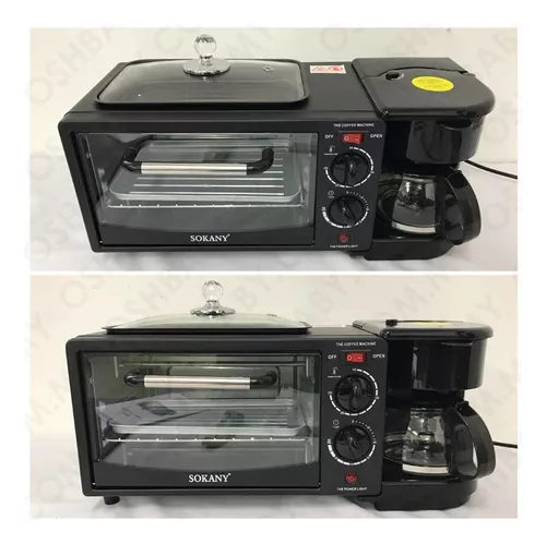 Máquina Desayuno 3 en 1 Sokany Cafetera Mini Horno Parrilla--------