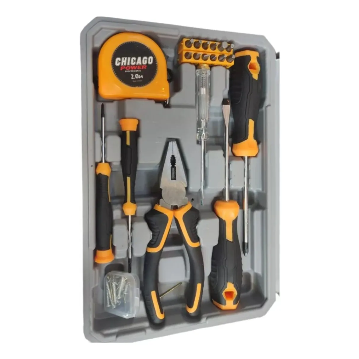 - El kit de herramientas Chicago Power X 59 piezas es una colección completa y versátil de herramientas, diseñada para satisfacer diversas necesidades de proyectos de mantenimiento, reparación y bricolaje.