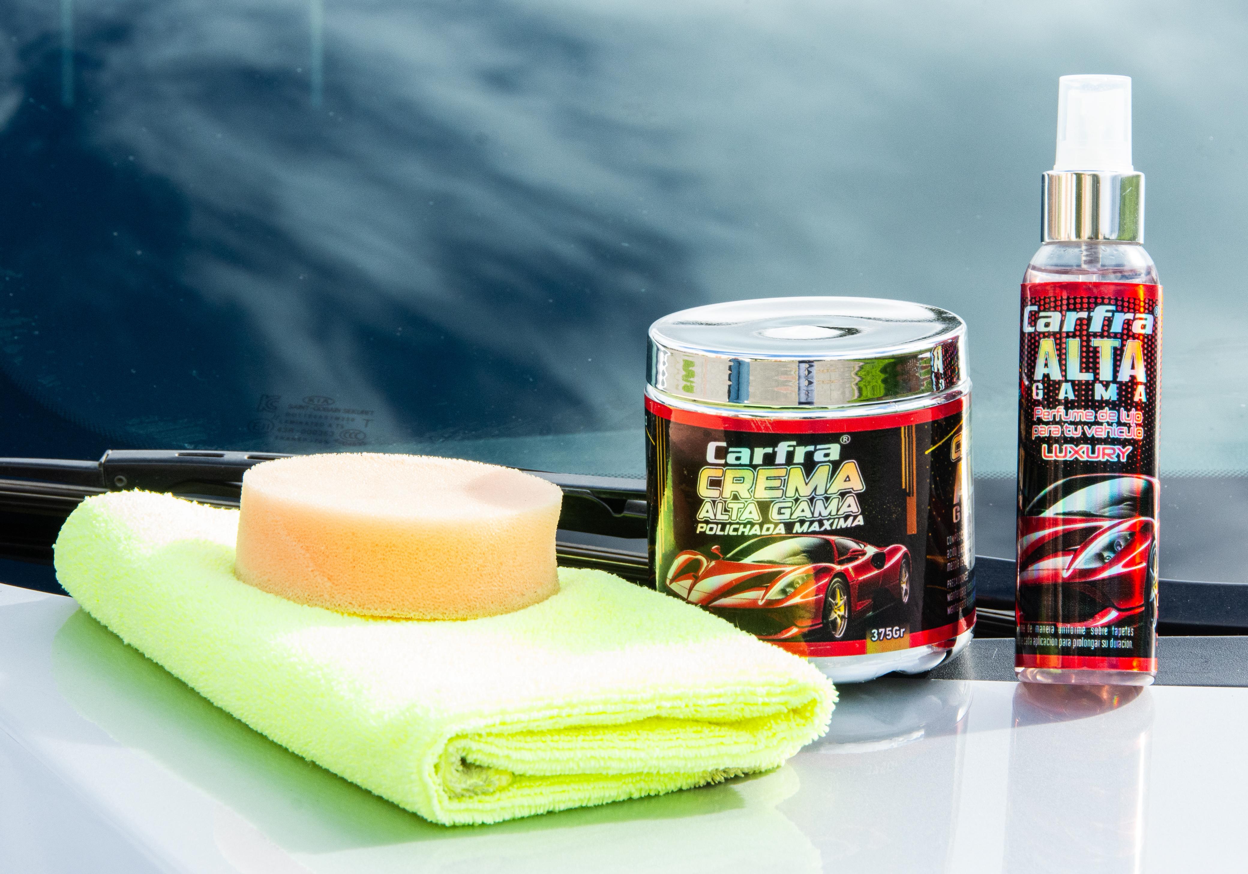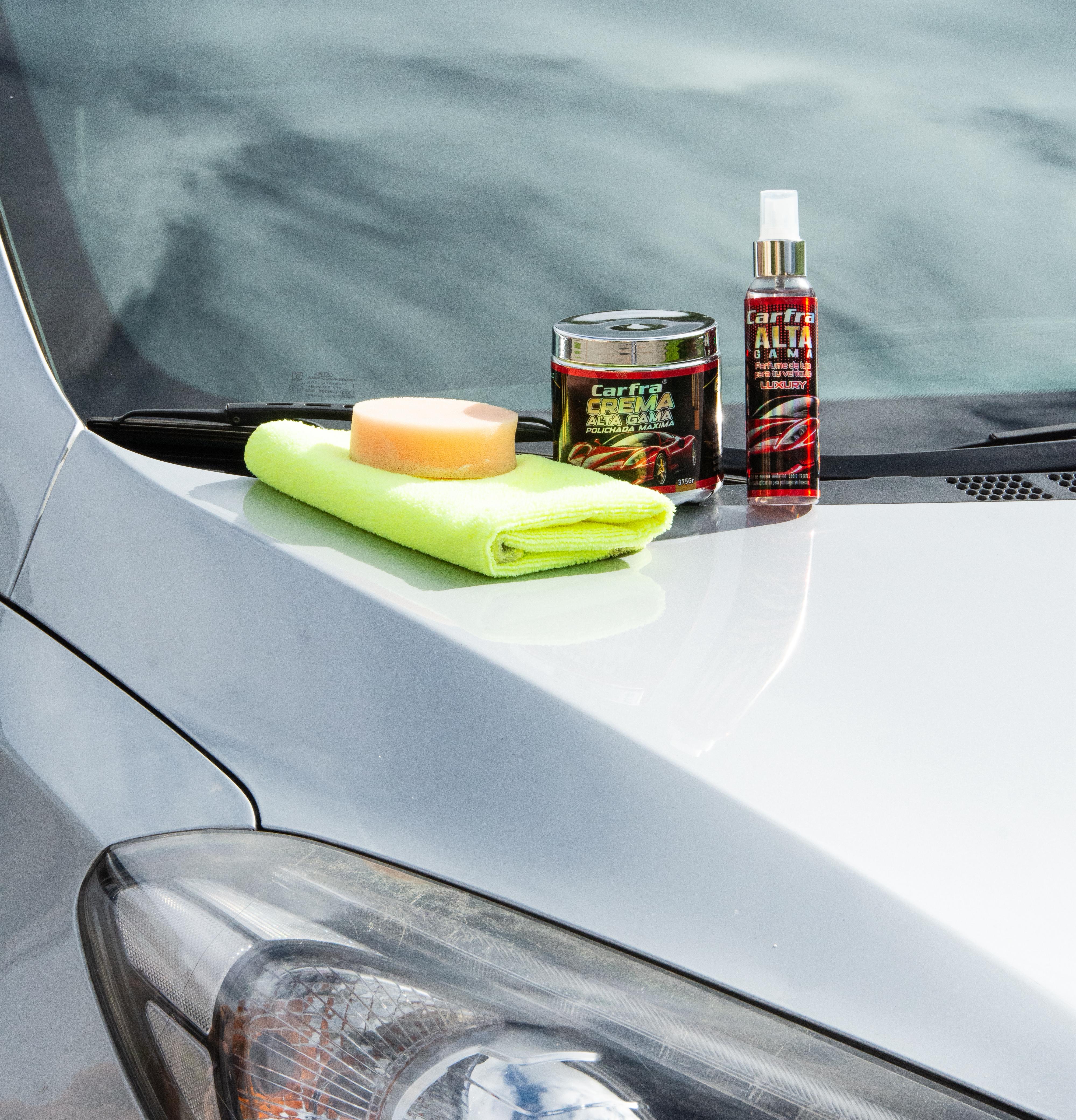 El KIT CUIDADO DE VEHÍCULOS tiene una CREMAPARA RESTAURAR Y BRILLAR y partes negras del vehículo, 🚘, 🛵,🚲, tiene un contenido de 375 g, incluye una espuma para aplicar la crema y una toalla de micro fibra para brillar, el color de la crema se adapta y realza los colores del vehículo.