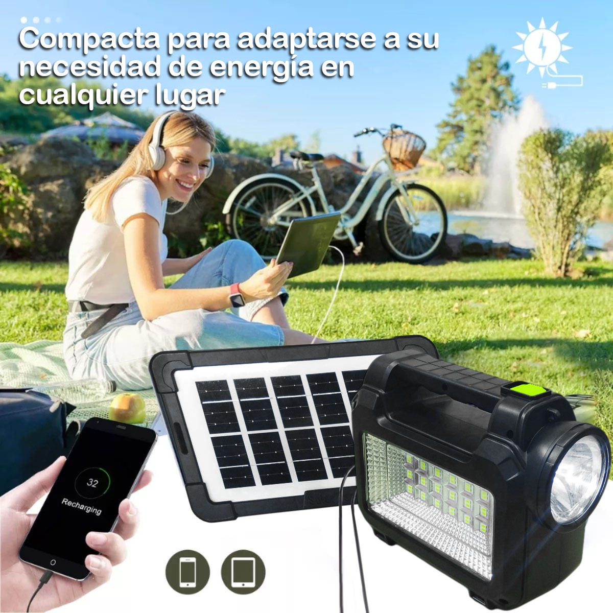 Prepárate para iluminarte cuando más lo necesitas solo carga el sistema utilizando la luz solar directa durante 12 a 15 horas.