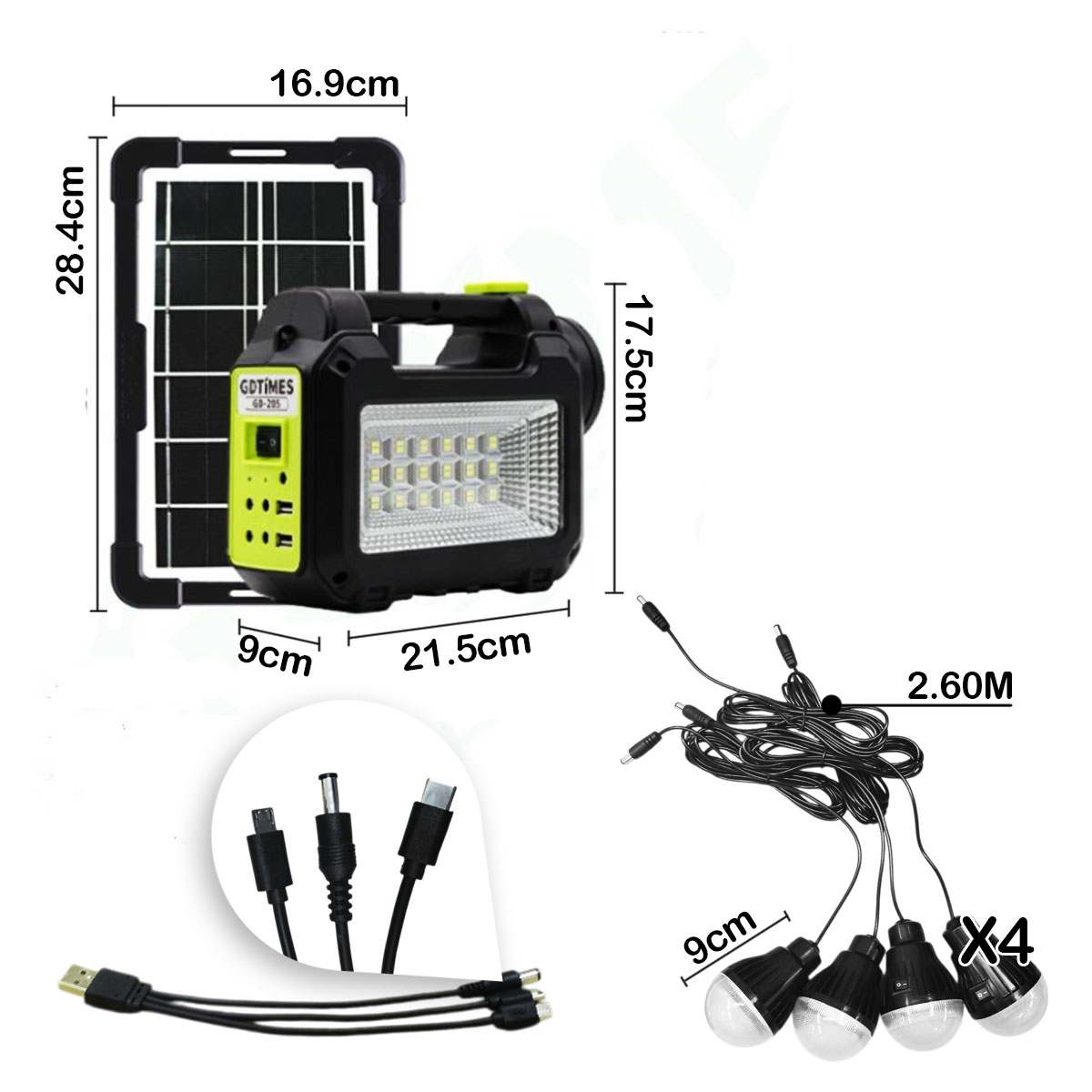 Tamaño Aprox.: Panel solar: 16.9 x 28.4 x 2 cm / Lampara: 17.5 x 21.5 x 9 cm