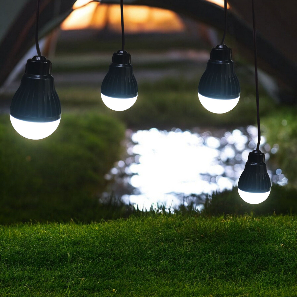 Este banco distribuye energía a 4 bombillos LED, cada uno con cables de 2.6 metros y prácticos interruptores independientes.