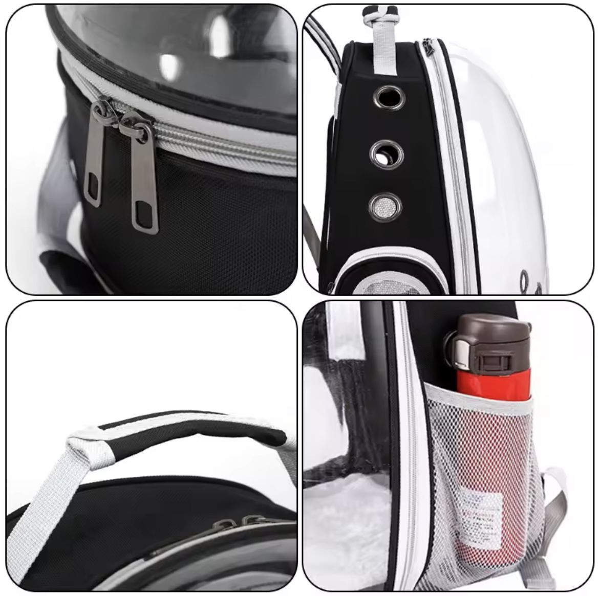 👀 Diseño transparente tipo cápsula: Vista panorámica de 180° que reduce la ansiedad de tu mascota al permitirle ver el exterior.