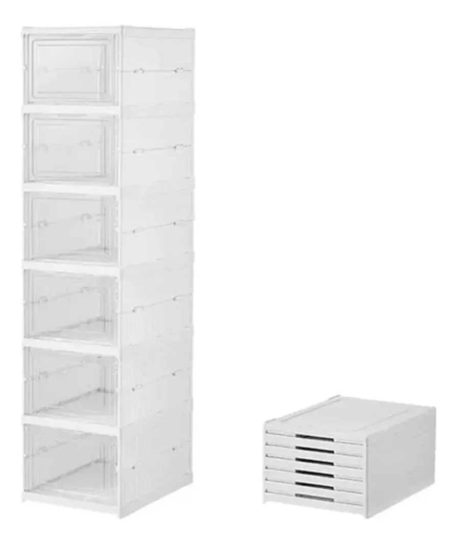 Organiza tu colección de calzado de manera eficiente y elegante con el Organizador de Zapatos Calzado Tenis de 6 Niveles. Este práctico mueble, fabricado en acrílico, combina un diseño moderno con funcionalidad, permitiéndote almacenar hasta seis pares de zapatos en un espacio optimizado. Con unas dimensiones de 110 cm de altura, 34,5 cm de ancho y 37,5 cm de profundidad, se adapta perfectamente a cualquier rincón de tu hogar. Su estructura plegable facilita su almacenamiento cuando no está en uso, mientras que su diseño acrílico aporta un toque contemporáneo a tu decoración. No requiere ensamblado, lo que significa que podrás disfrutar de un espacio ordenado en cuestión de minutos. Además, cuenta con seis estantes y seis cajones, brindando múltiples opciones para organizar tus zapatos y accesorios de manera práctica. Ideal para quienes buscan maximizar el espacio sin sacrificar el estilo, este organizador es perfecto para dormitorios, vestidores o áreas de entrada. Su diseño versátil se integra fácilmente en cualquier ambiente, convirtiéndolo en una solución ideal para mantener tus zapatos a la vista y al alcance. Dale a tu calzado el lugar que merece y transforma tu espacio con este elegante organizador.