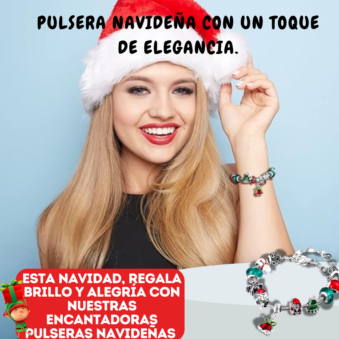Dale un toque mágico a tu look navideño con estas preciosas pulseras de encanto navideño.