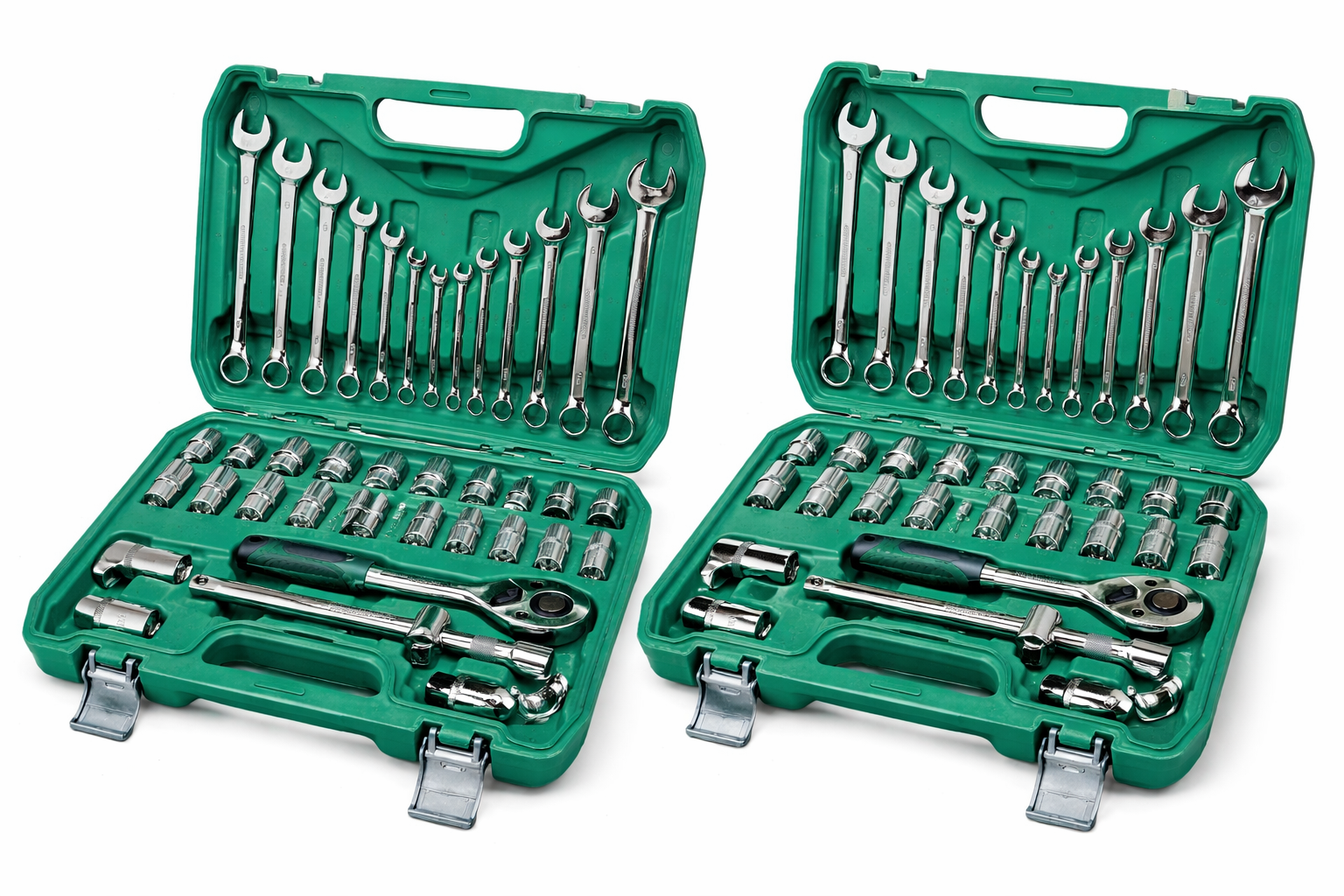 Producto: Juego de Herramientas Mecánicas en Maletín Tipo: Juego de llaves combinadas y copas con ratchet Material: Acero cromo vanadio Acabado: Cromado pulido anticorrosivo Color del maletín: Verde Presentación: Maletín plástico rígido con cierres de seguridad