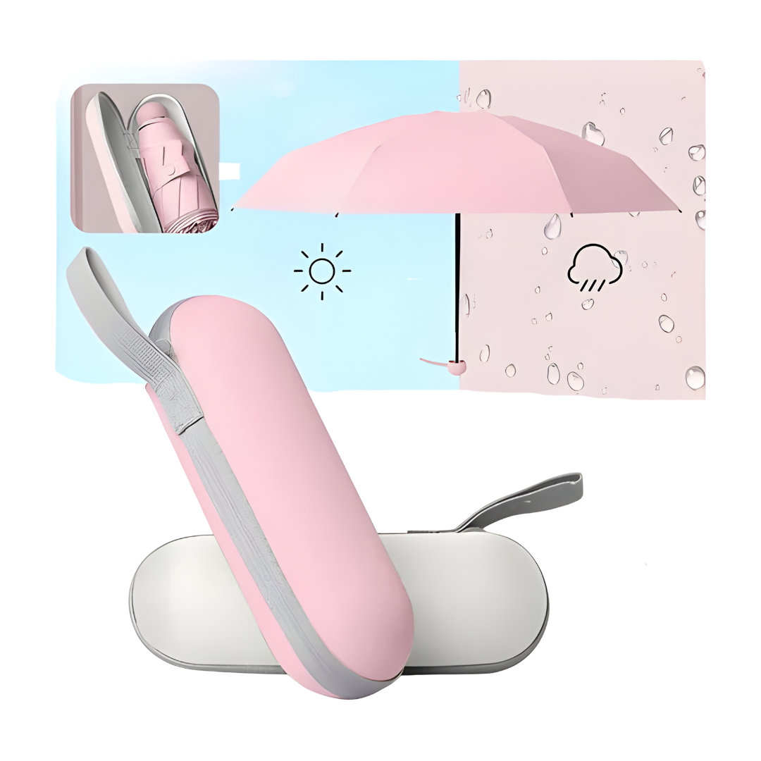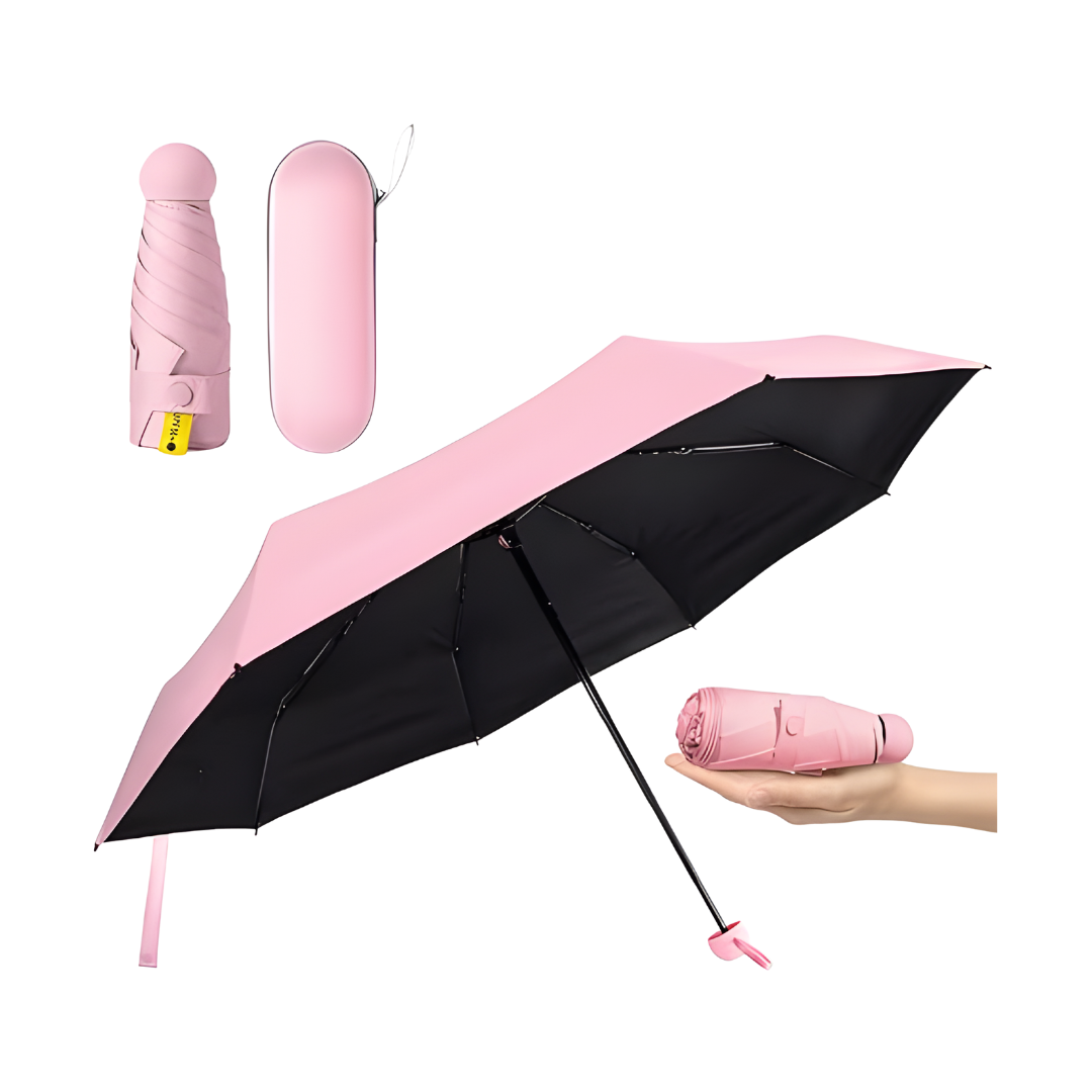 Ultra-Compacto: La sombrilla se pliega en un tamaño muy pequeño y cabe en la palma de una mano (como se muestra en la imagen), lo que la hace ideal para carteras o bolsillos.